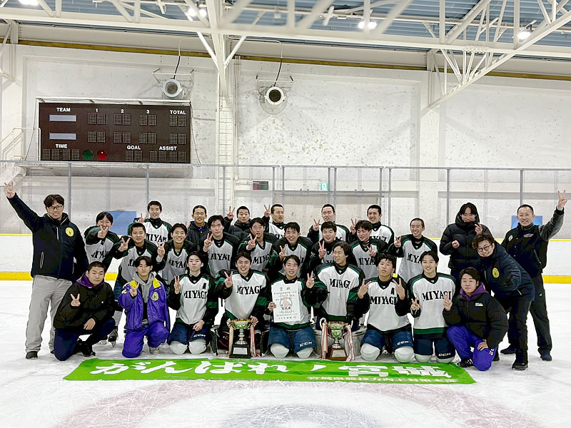 春から秋にかけては陸上トレーニングが中心で、氷上練習は週2回アイスリンク仙台で行っています。冬は大和町のベルサンピアで毎日練習しています。県内にアイスホッケー部のある高校がないので、大学生や他県の高校と練習試合をしながら強化を図っています。
